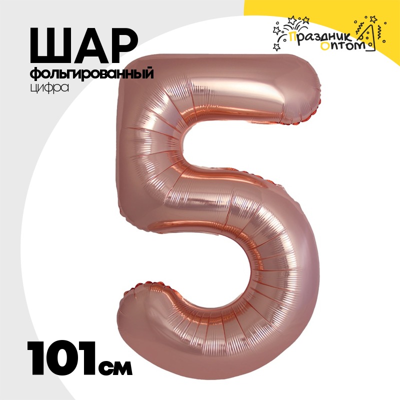Шар фольгированный Цифра 5 101 см (Розовое Золото)