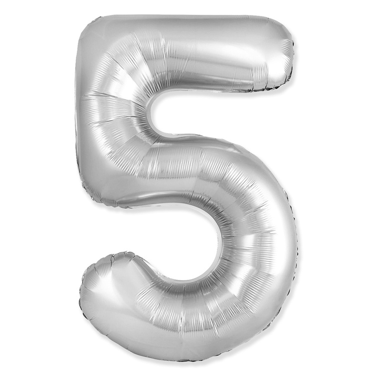 Шар фольгированный Цифра 5 101 см (Серебряный)