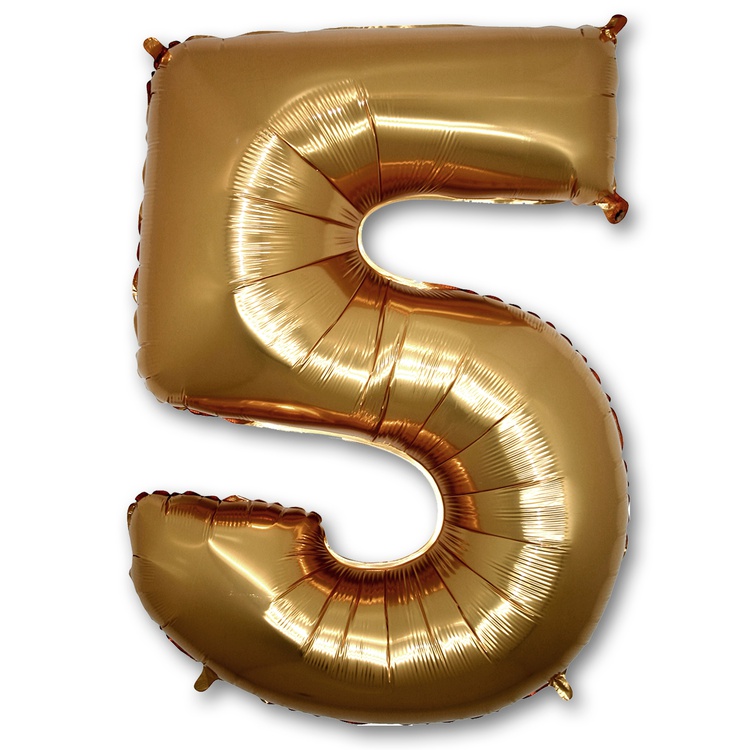 Шар фольгированный Цифра 5 101 см (Золотой)
