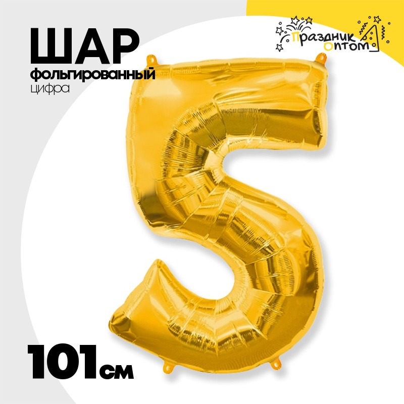 Шар фольгированный Цифра 5 101 см (Золотой)