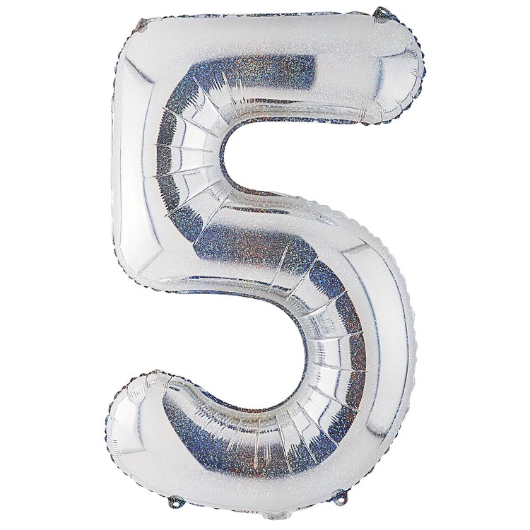 Шар фольгированный Цифра 5 105 см (Серебряный)