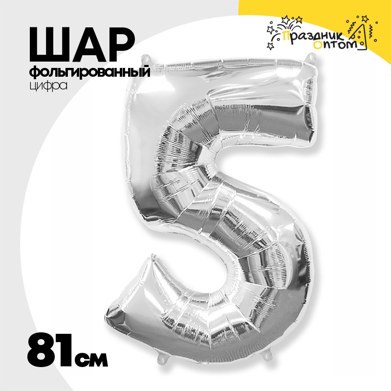 Шар фольгированный Цифра 5 81 см (Серебряный)