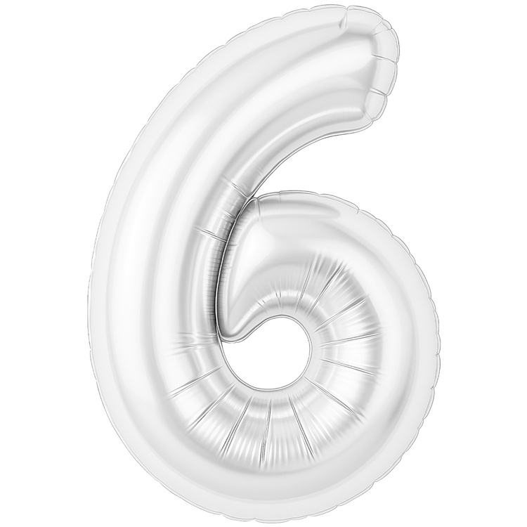 Шар фольгированный Цифра 6 101 см (Белый)