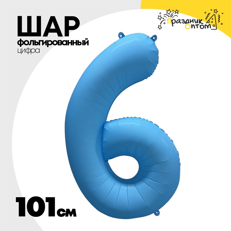 Шар фольгированный Цифра 6 101 см (Голубой)