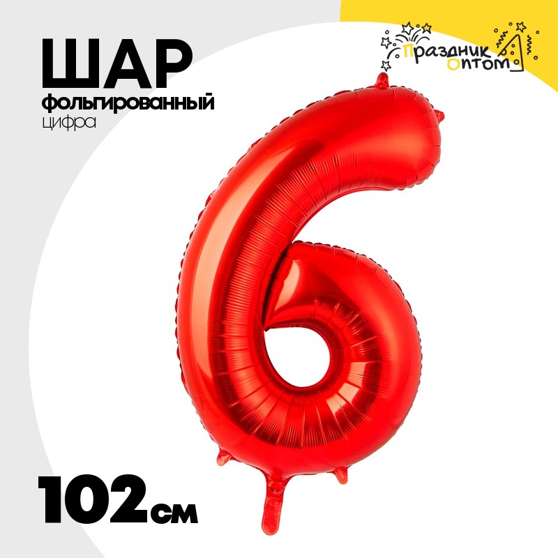Шар фольгированный Цифра 6 102 см (Красный)
