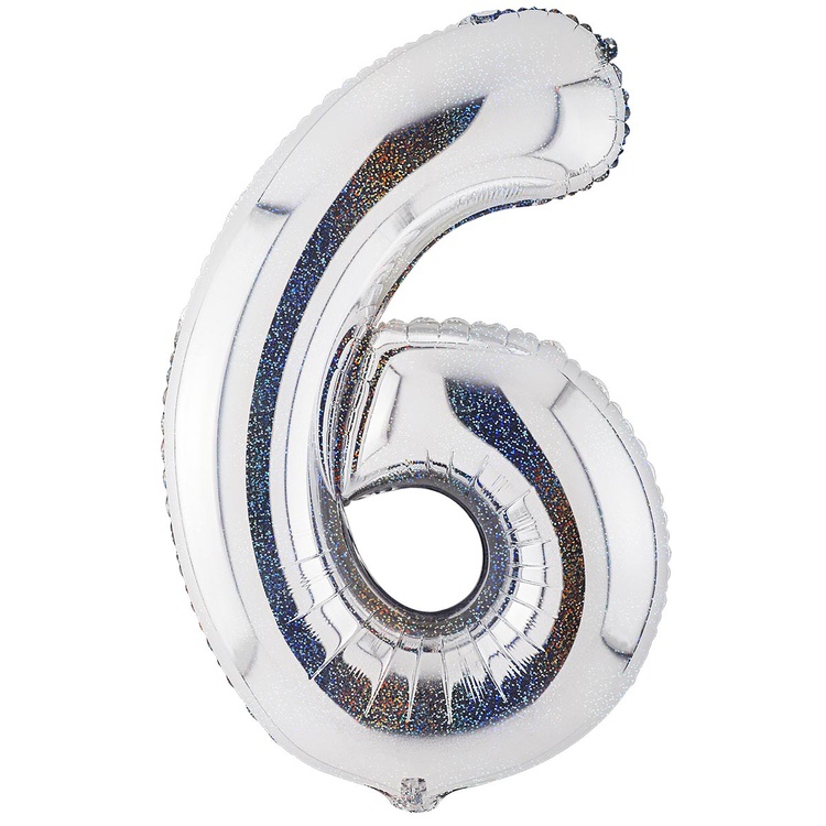Шар фольгированный Цифра 6 102 см (Серебряный)