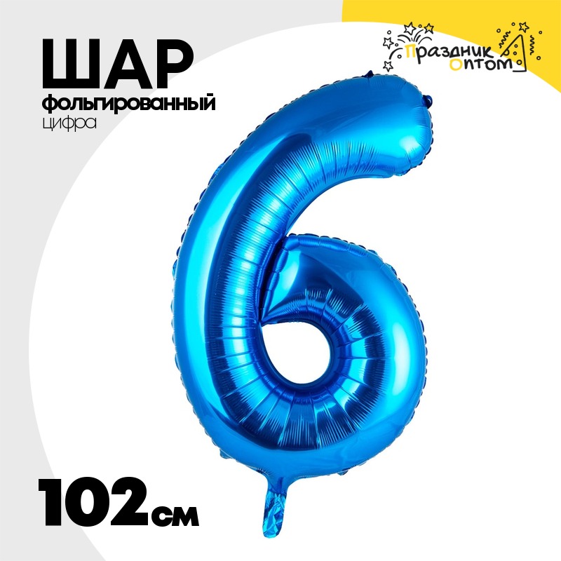 Шар фольгированный Цифра 6 102 см (Синий)