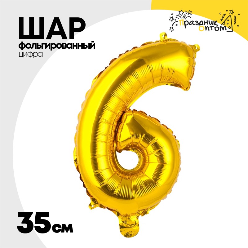 Шар фольгированный Цифра 6 35 см (Золотой)