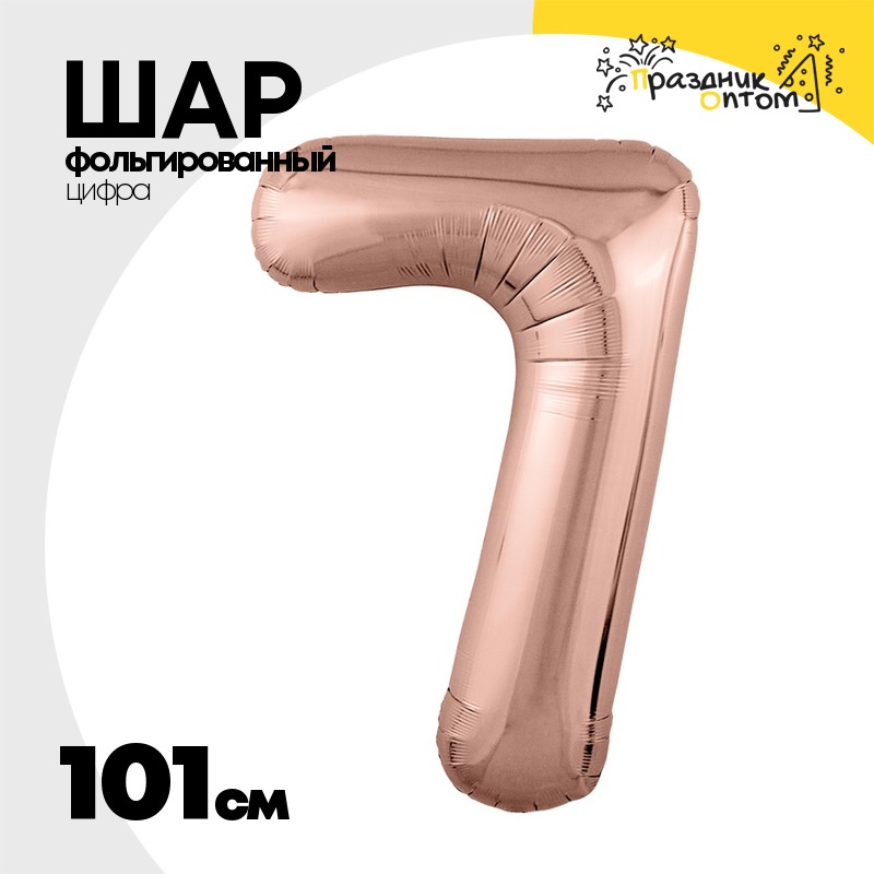 Шар фольгированный Цифра 7 101 см (Розовое Золото)