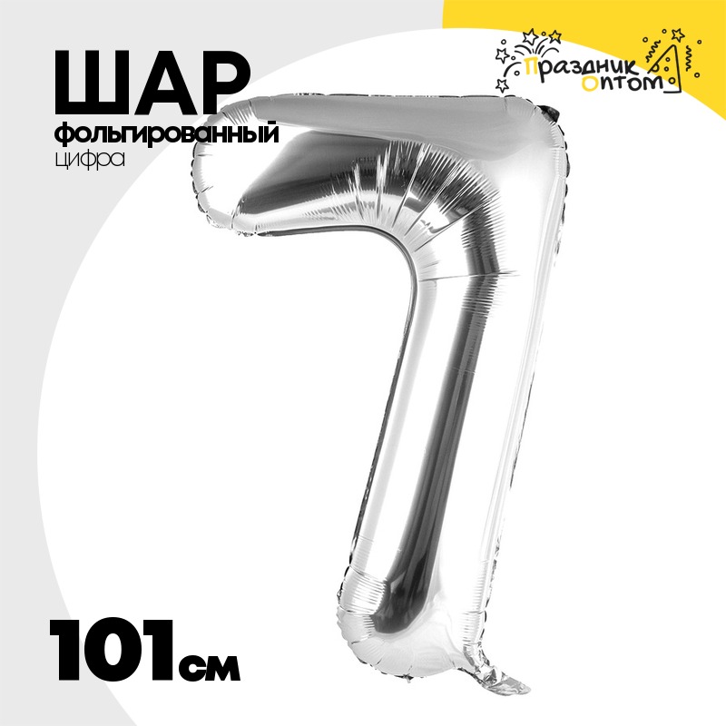 Шар фольгированный Цифра 7 101 см (Серебряный)