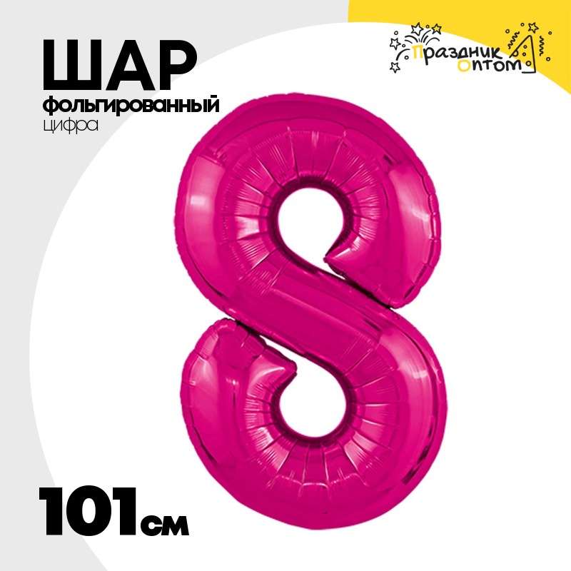 Шар фольгированный Цифра 8 101 см (Фуксия)