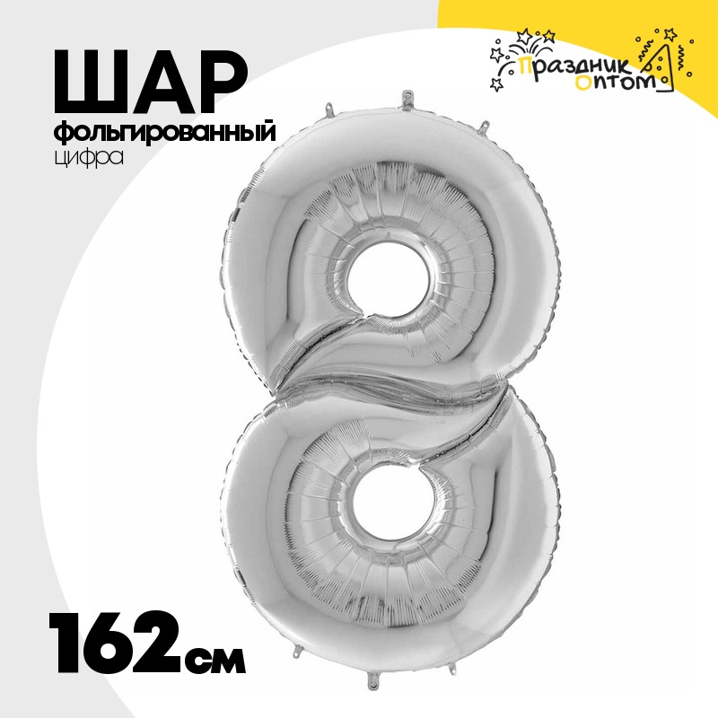 Шар фольгированный Цифра 8 162 см (Серебряный)
