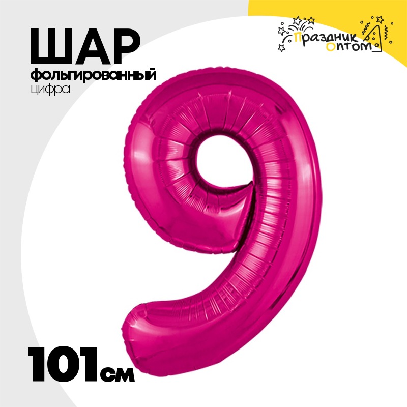 Шар фольгированный Цифра 9 101 см (Фуксия)