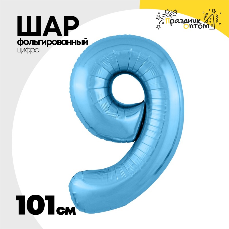 Шар фольгированный Цифра 9 101 см (Голубой)
