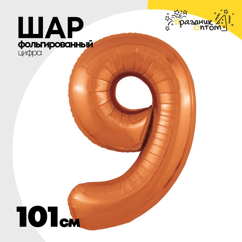 Шар фольгированный Цифра 9 101 см (Оранжевый)