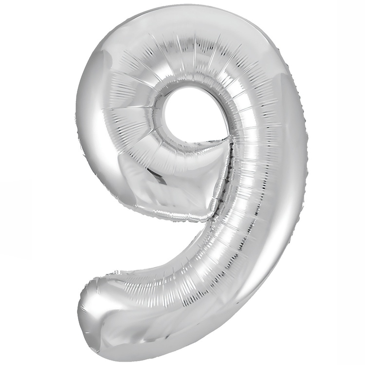Шар фольгированный Цифра 9 101 см (Серебряный)