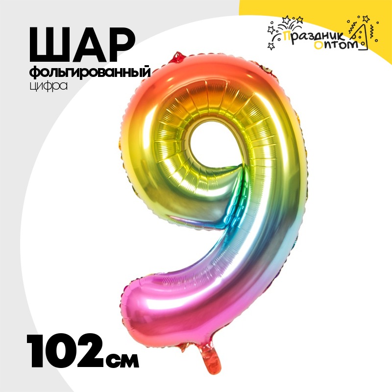 Шар фольгированный Цифра 9 102 см (Ассорти)