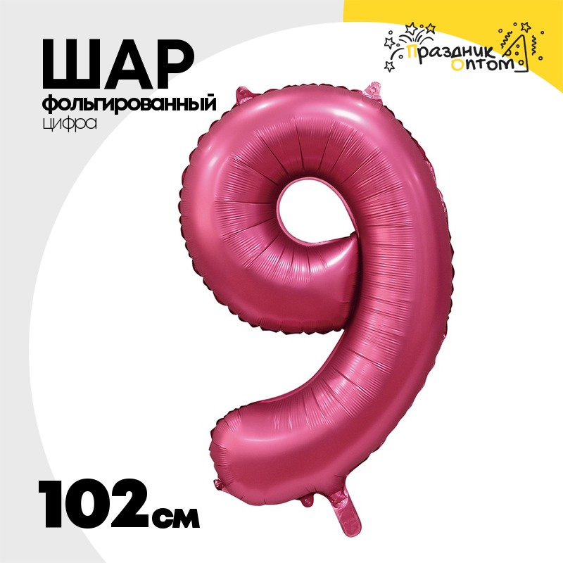 Шар фольгированный Цифра 9 102 см (Бургундия)