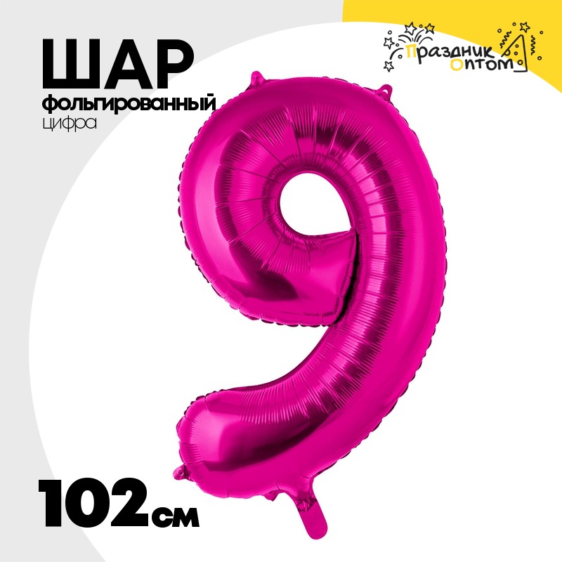 Шар фольгированный Цифра 9 102 см (Фуксия)