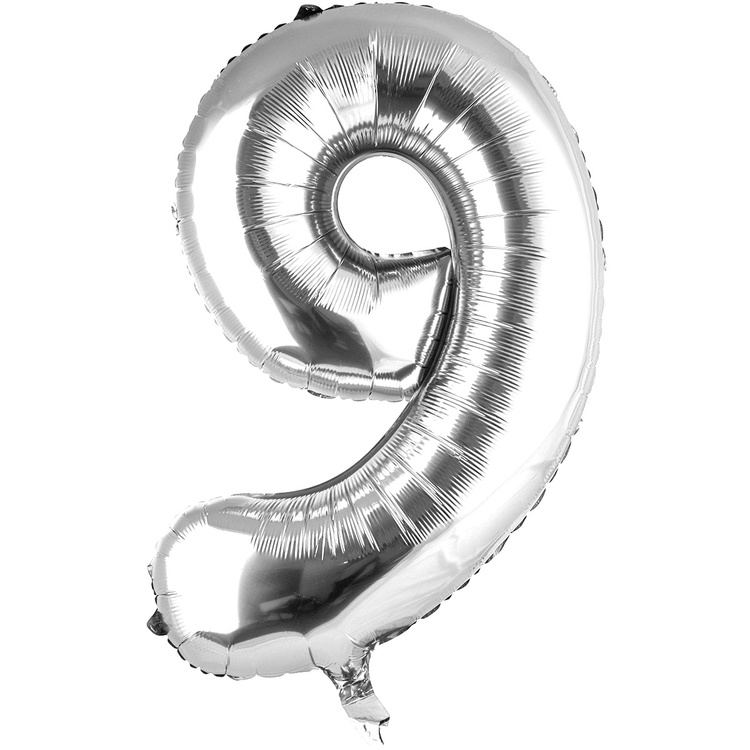 Шар фольгированный Цифра 9 102 см (Серебряный)