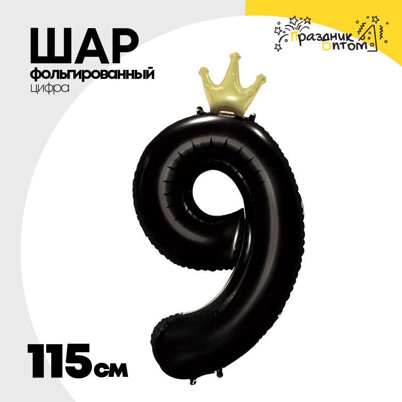 Шар фольгированный Цифра 9 115 см (Черный)