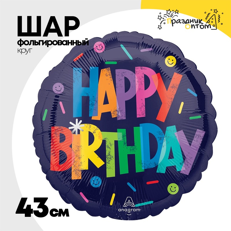 Шар Фольгированный Цветной шрифт (Ассорти)