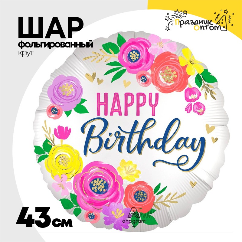 Шар Фольгированный Цветочный рисунок сатин (Белый)