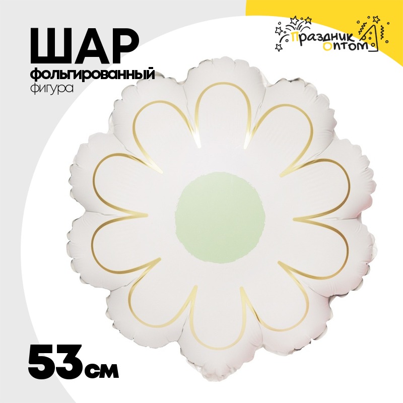 Шар Фольгированный Цветок Ромашка белая с золотом (Белый)