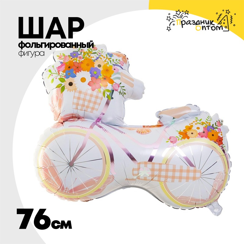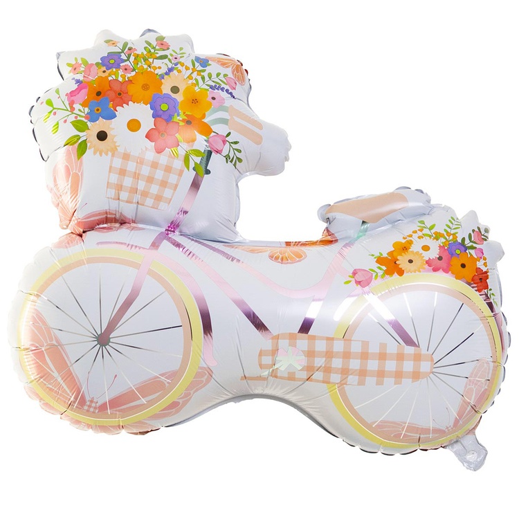 Шар Фольгированный Велосипед с цветами (Бежевый)