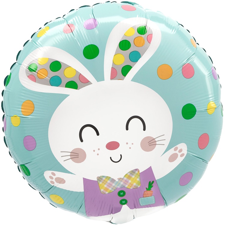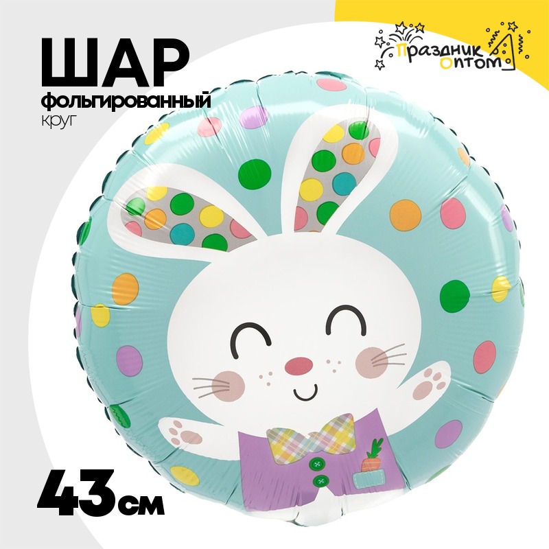 Шар Фольгированный Заяц радостный горошек цветной (Голубой)