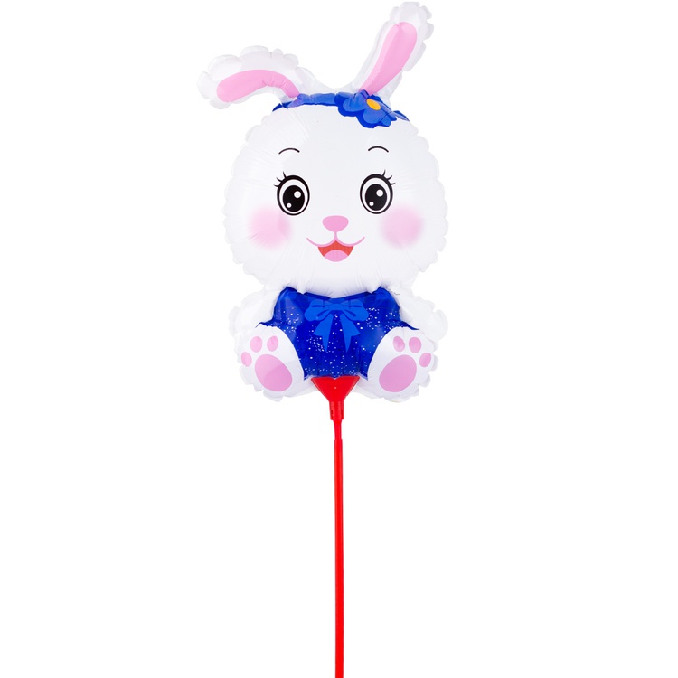 Шар Фольгированный Заяц в синем на палочке (Голубой)