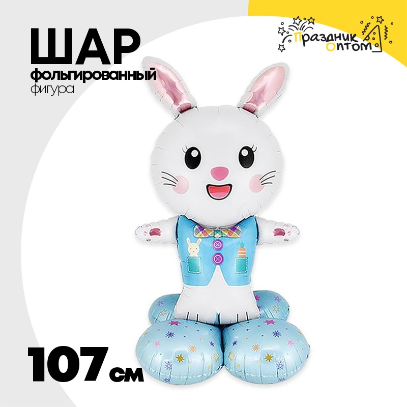 Шар Фольгированный Заяц жилетка голубая (Голубой)