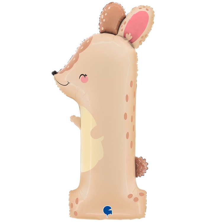 Шар Фольгированный Цифра 1 Зайка (Бежевый)