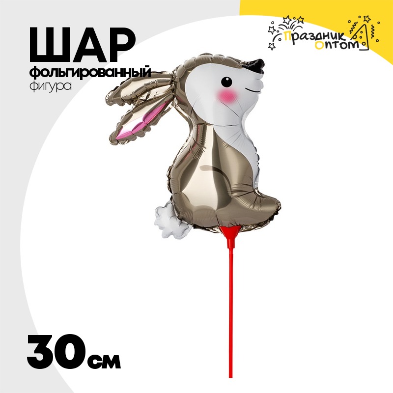 Шар Фольгированный Зайка на палочке (Серый)