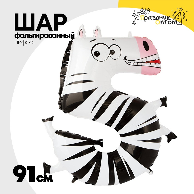 Шар Фольгированный Цифра 5 Зебра (Ассорти)