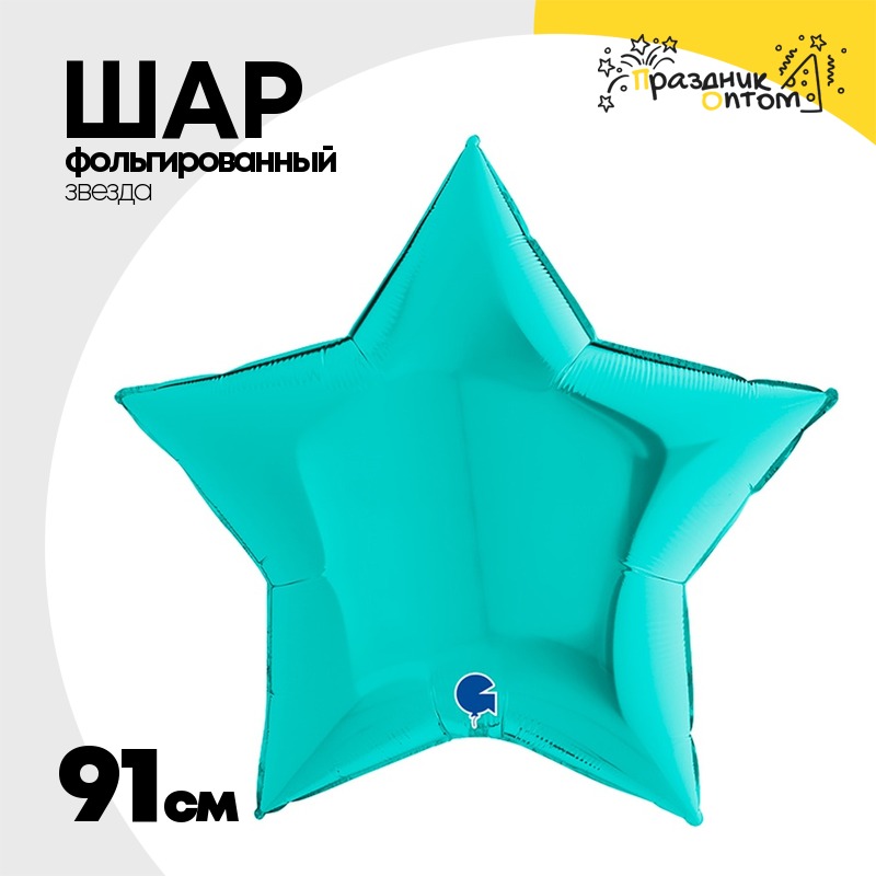 Шар фольгированный Звезда 91 см (Бирюзовый)
