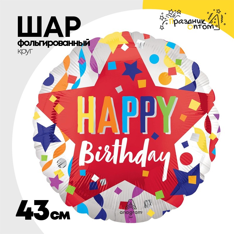 Шар Фольгированный Звезда в круге серпантин (Белый)
