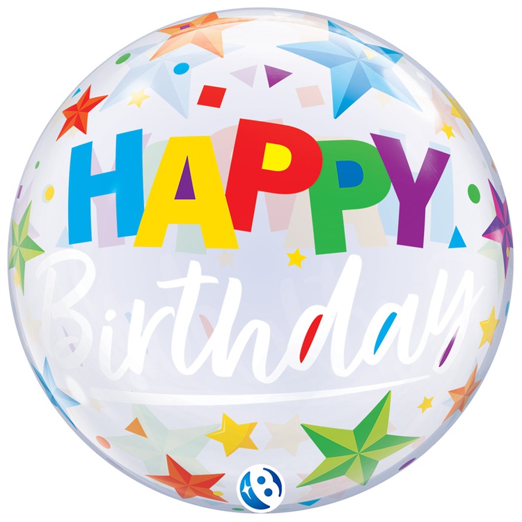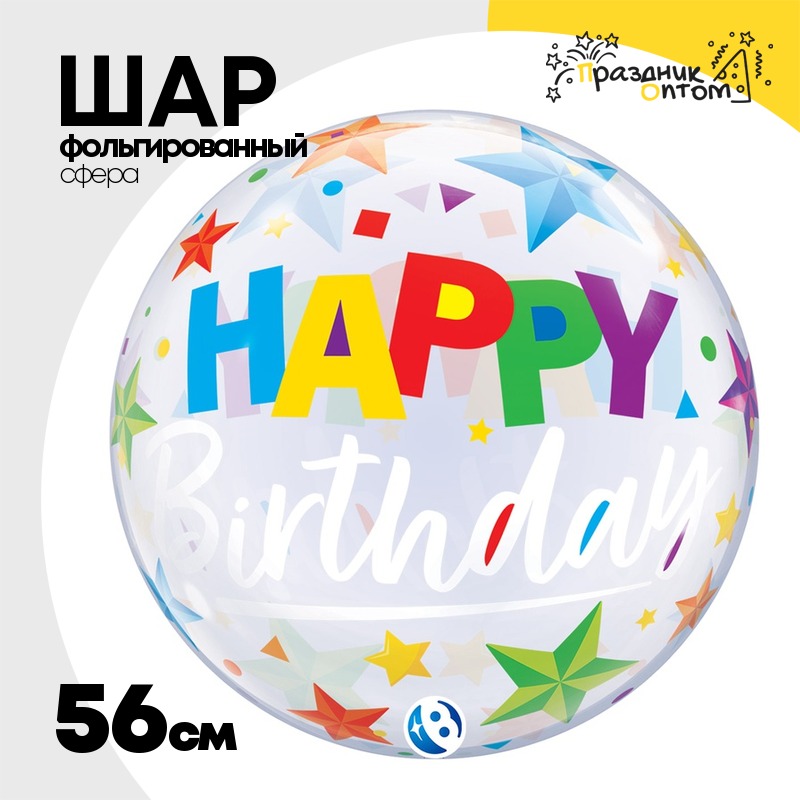 Шар Фольгированный Звезды разноцветные Bubble Прозрачный (Ассорти)