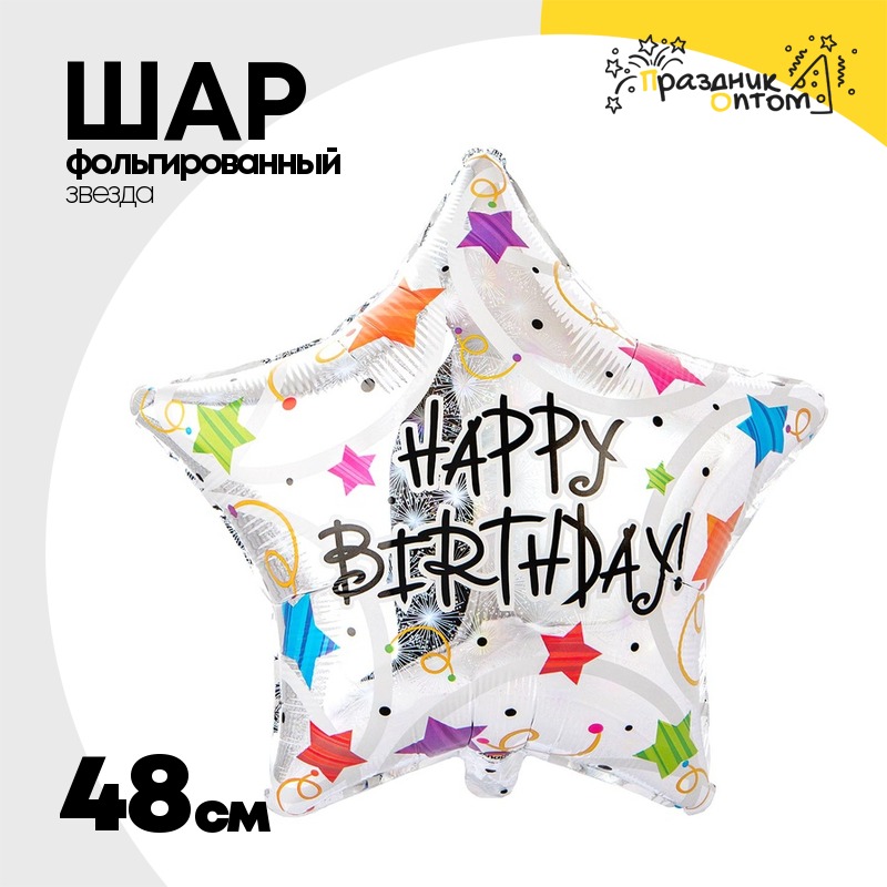 Шар Фольгированный Звезды разноцветные (Серебряный)