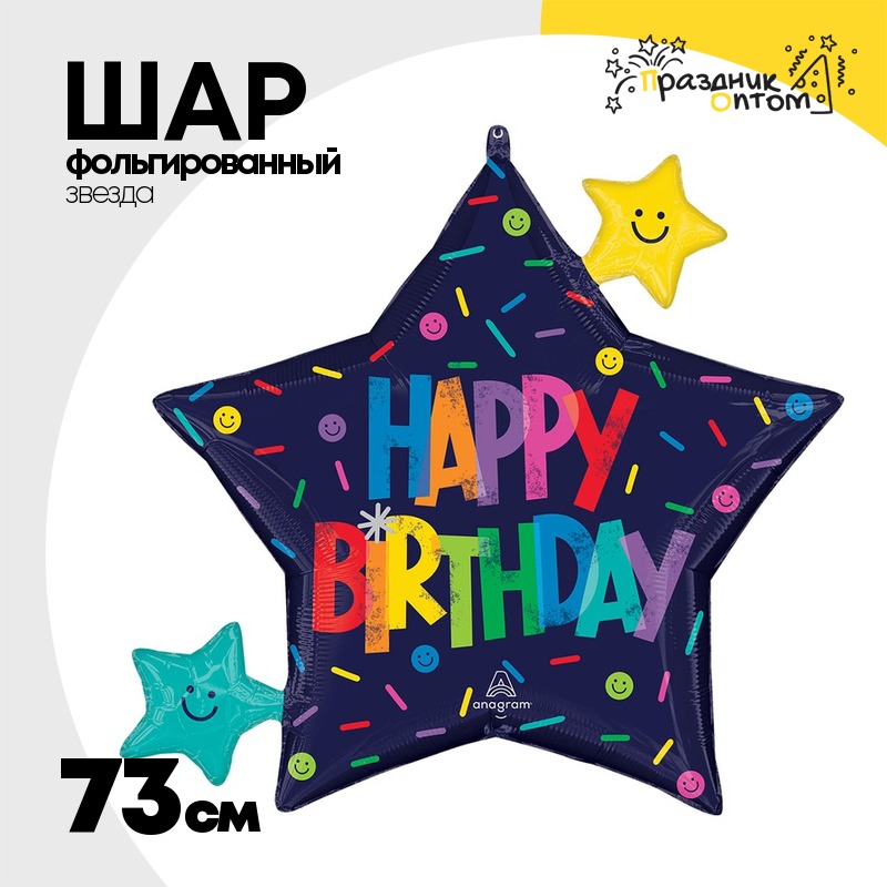 Шар Фольгированный Звезды Цветной шрифт (Ассорти)
