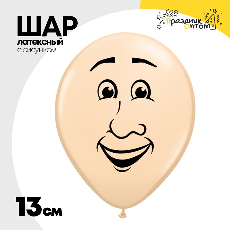 Шар латексный 13см Лицо Мужское (Бежевый)