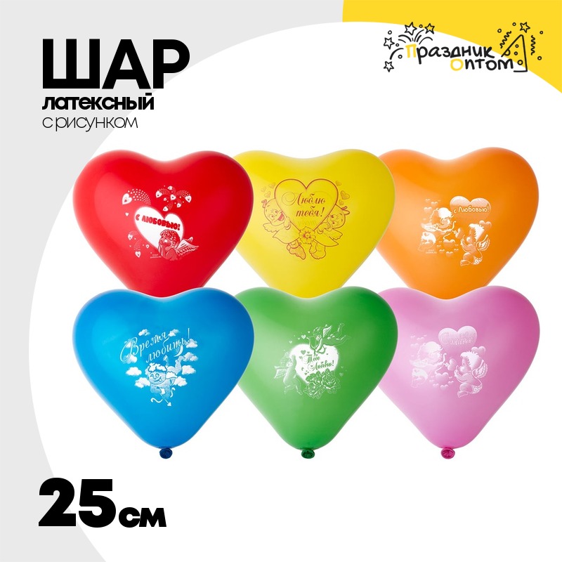 Шар латексный 25см Любовь Амурчики (Ассорти)