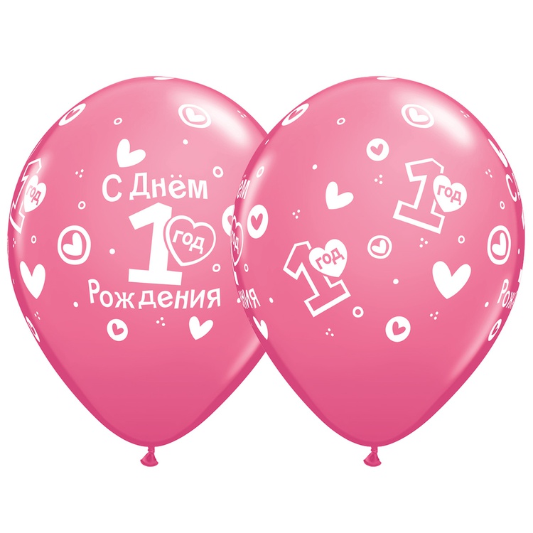 Шар латексный 28см 1 ДР Сердечки (Розовый)