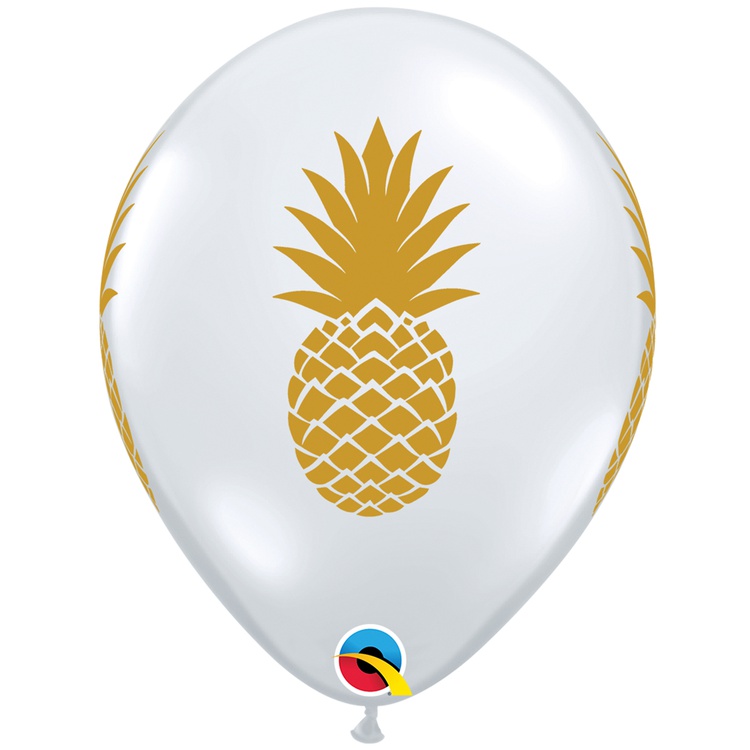 Шар латексный 28см Ананас золотой (Прозрачный)
