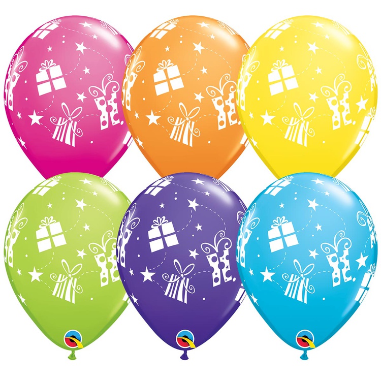 Шар латексный 28см Подарки и Звезды (Ассорти)
