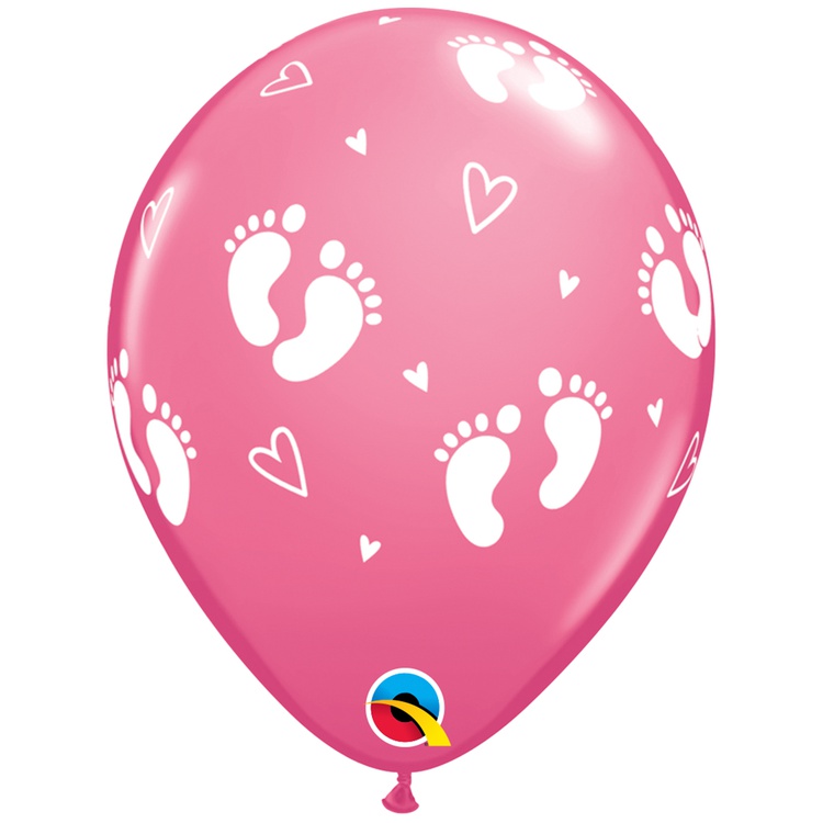 Шар латексный 28см Пяточки детские (Розовый)