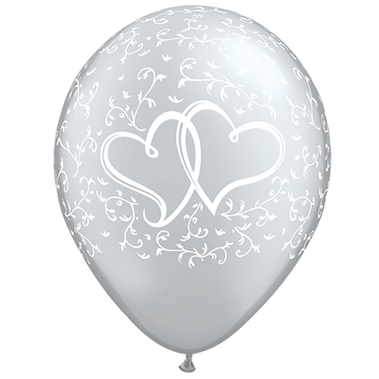 Шар латексный 28см Сердца переплетенные (Серебро)