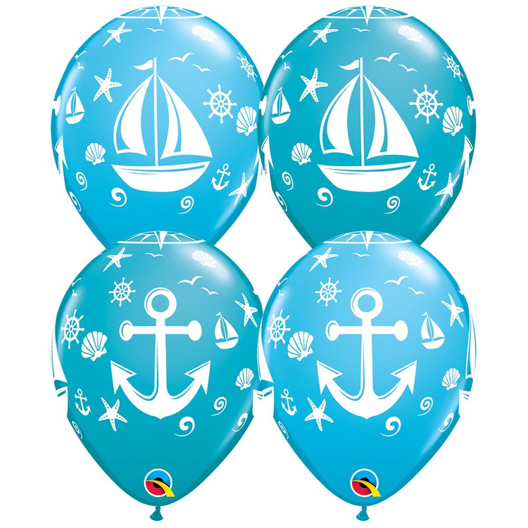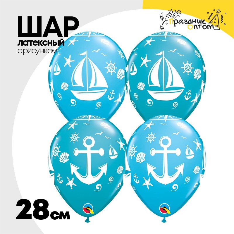 Шар латексный 28см Якорь Парусник (Голубой)