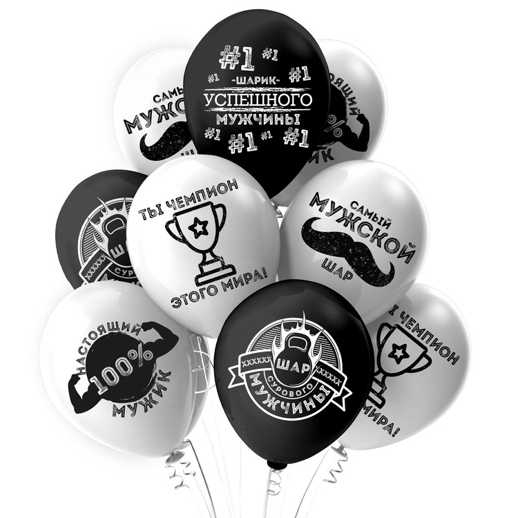 Шар латексный 30см Для Настоящих Мужчин (Белый, Черный)