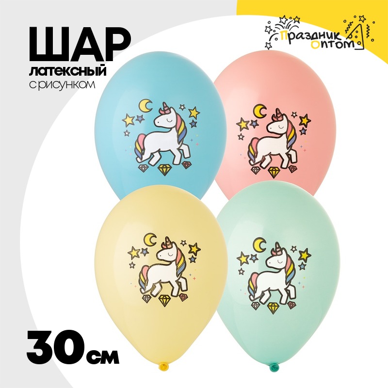 Шар латексный 30см Единорог (Ассорти)